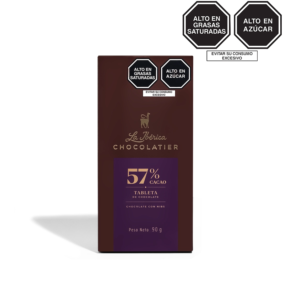 - Tableta de chocolate 57% con nibs x 90g
