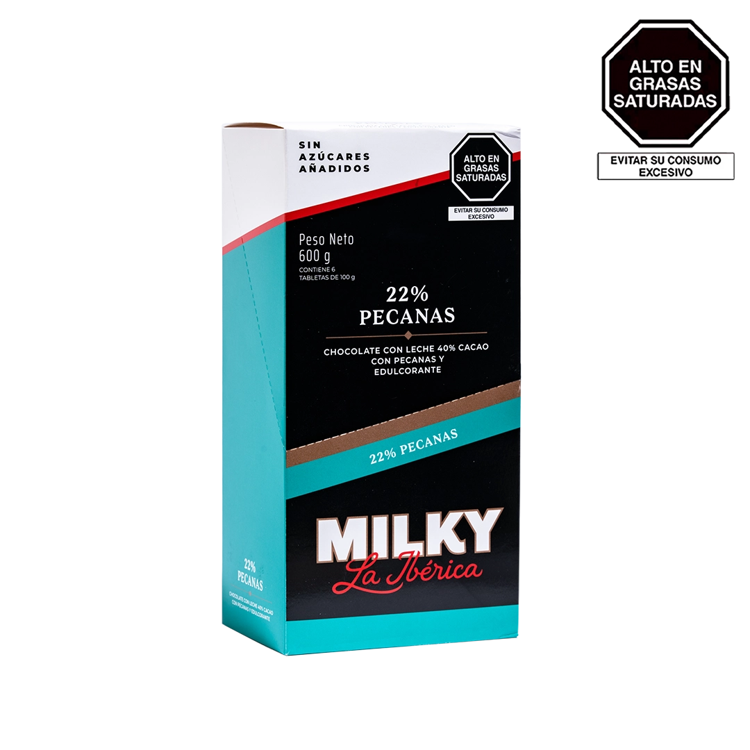 - Tableta Milky La Ibérica pecanas Sin Azúcares Añadidos x 100 g x 6pzs
